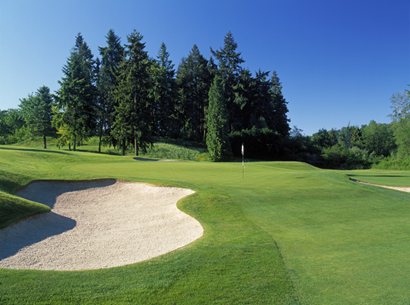 A par 4 mid-range left dogleg, this hole begs for you to lay up off the tee, taking the trouble of the creek out of play. For those more adventurous souls, a well placed driver, with a bit a draw, leaves you in great scoring position. From there the fairway slopes upward to a two tiered green.